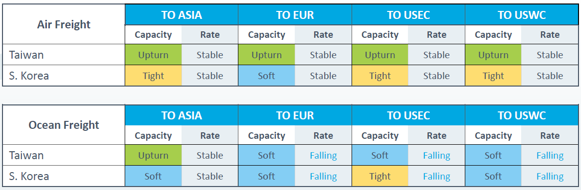 ⦿ Ocean and Air Freight Outlook: Global container spot rates have continued to decline despite significant capacity reductions by carriers. Dimerco forecasts that blank sailings will rise sharply following China's Golden Week to manage weaker demand. Air freight remains constrained due to disruptions such as the recent China-Europe Railway issues and the lingering impacts of Super Typhoon Ragasa in Hong Kong and South China.